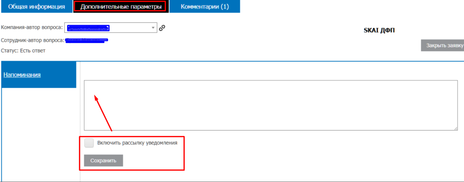 - Дополнительная информация - здесь можно добавить почту сотрудника, который должен получать оповещения по заявке.